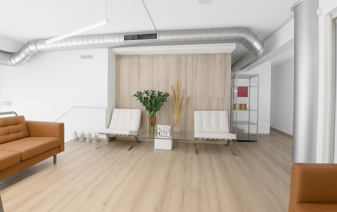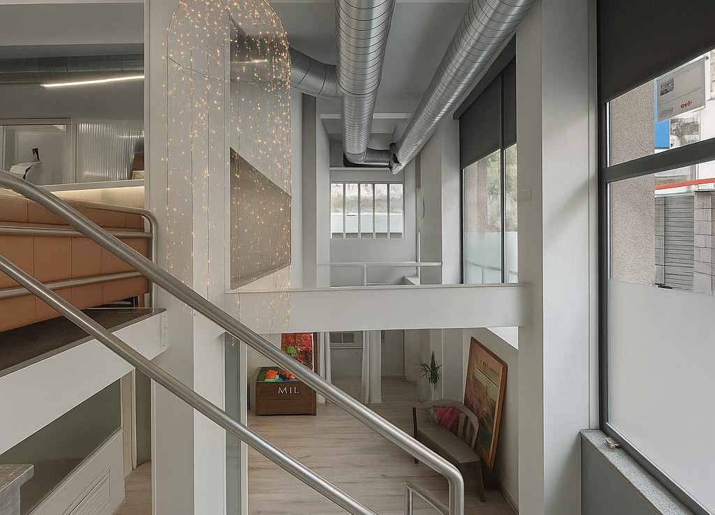 El espacio ofrece una distribución funcional y versátil, con una superficie totalmente diáfana: Planta principal de 134 m², con una doble altura generosa en la entrada que aporta amplitud, luminosidad y gran impacto visual.