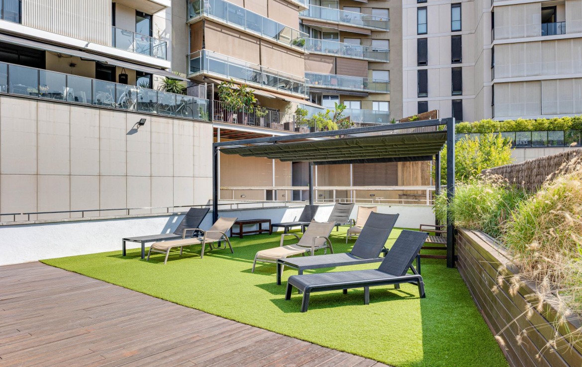 Exclusiva vivienda, plaza de garaje y trastero en venta en Avenida Diagonal – Poble Nou, con piscina y jardín comunitario!