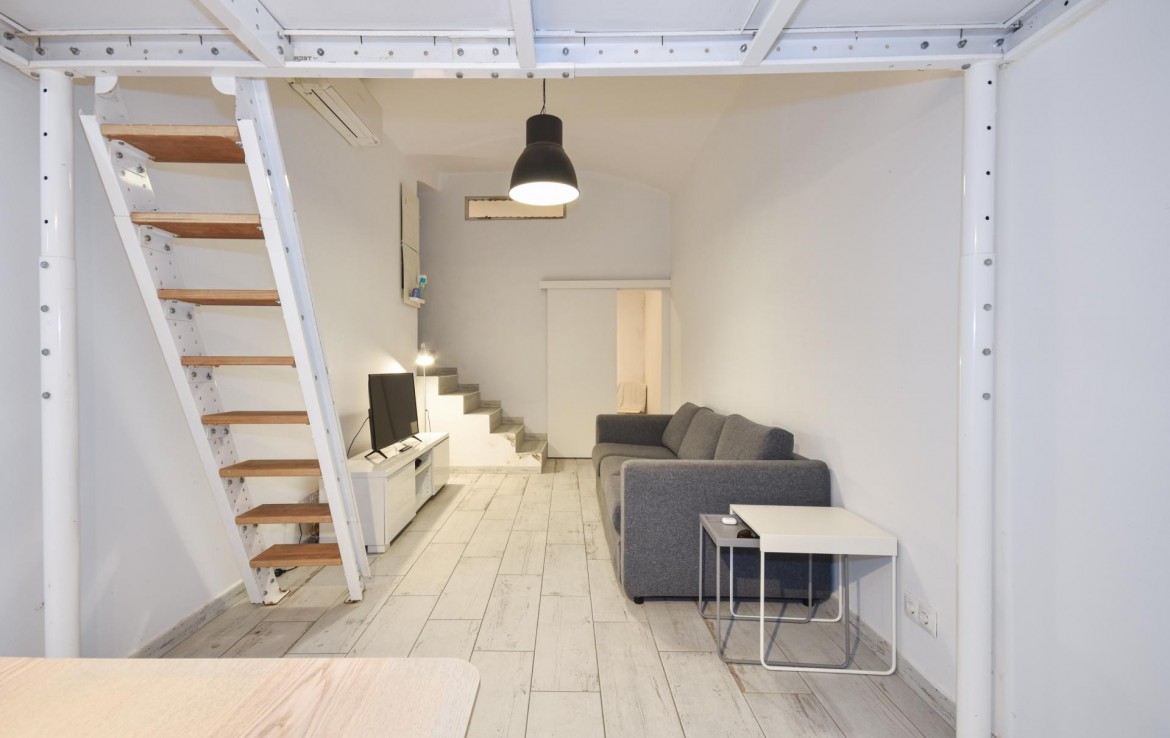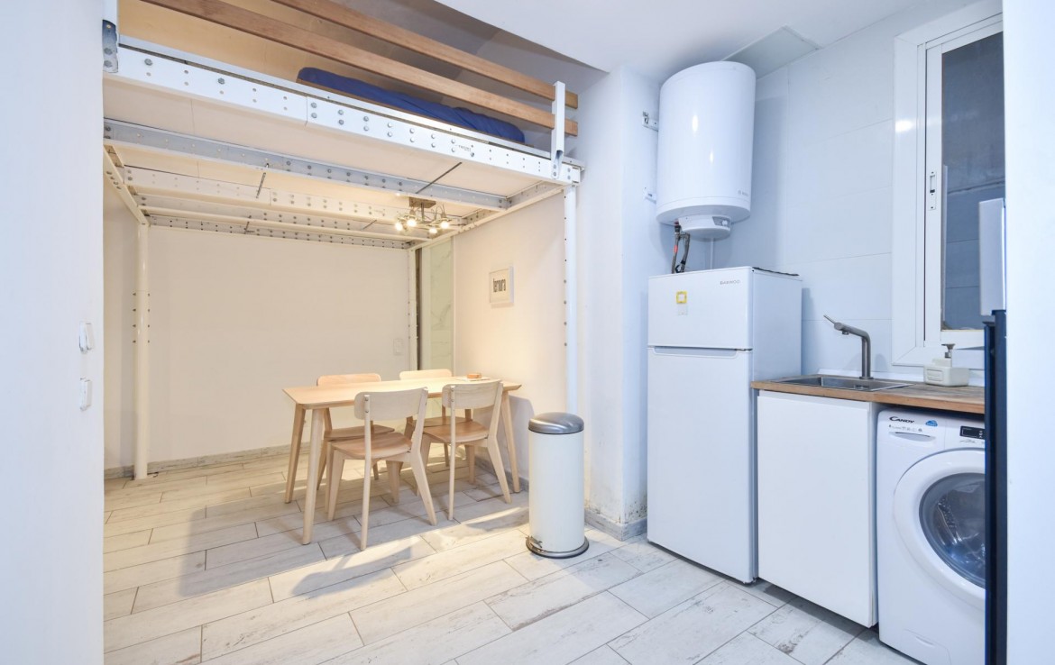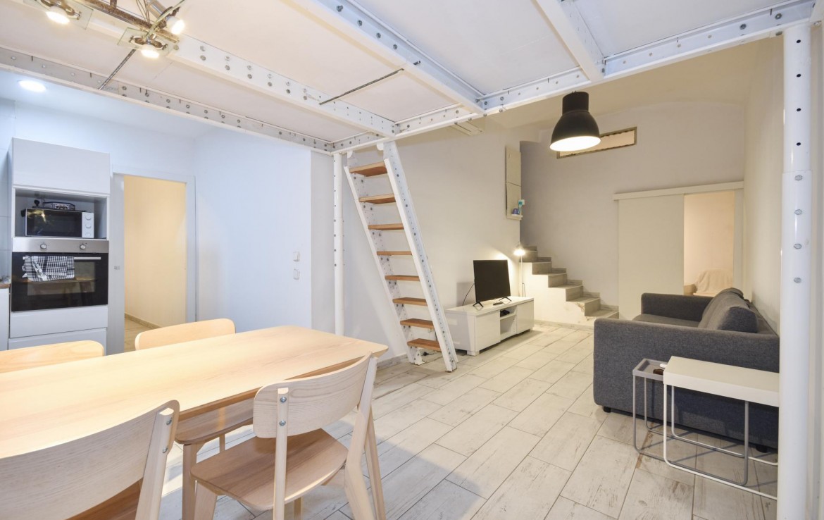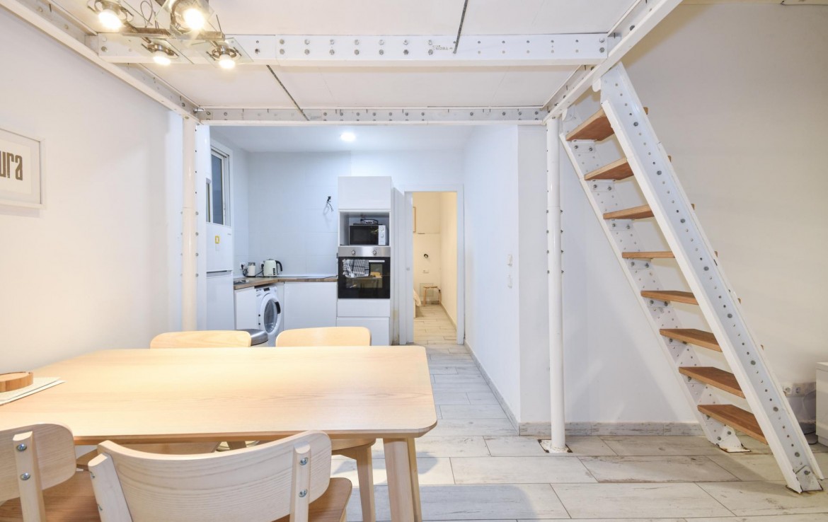 El espacio consta de dos amplias habitaciones, más un altillo que puede utilizarse como zona de descanso, de almacenamiento o incluso un pequeño despacho.