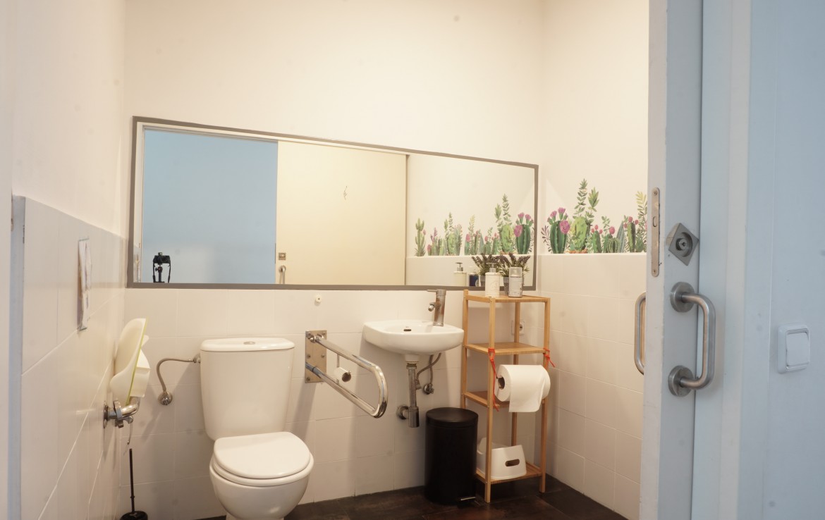 El local cuenta con 1 baño adaptado y carpintería de aluminio, así como un motor eléctrico en la persiana de acceso para mayor comodidad. Además, está bien comunicado y junto al metro Les Corts.