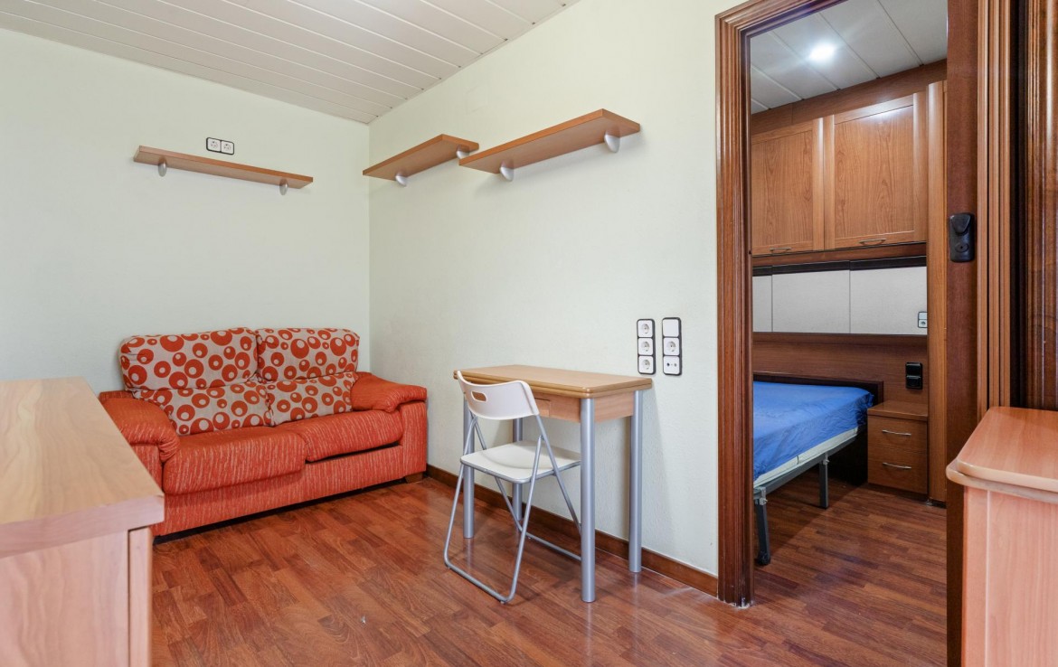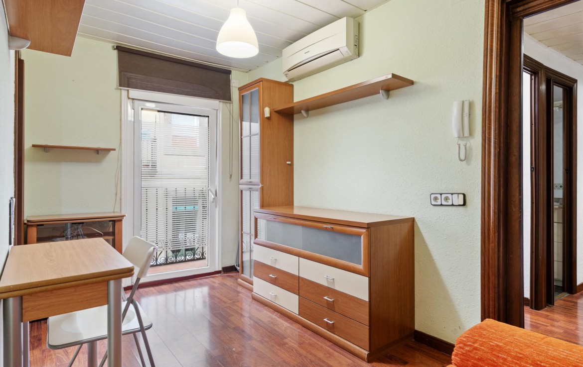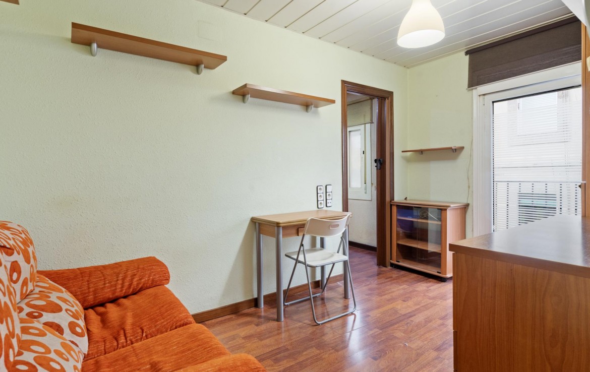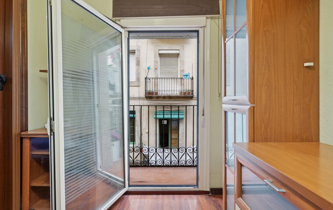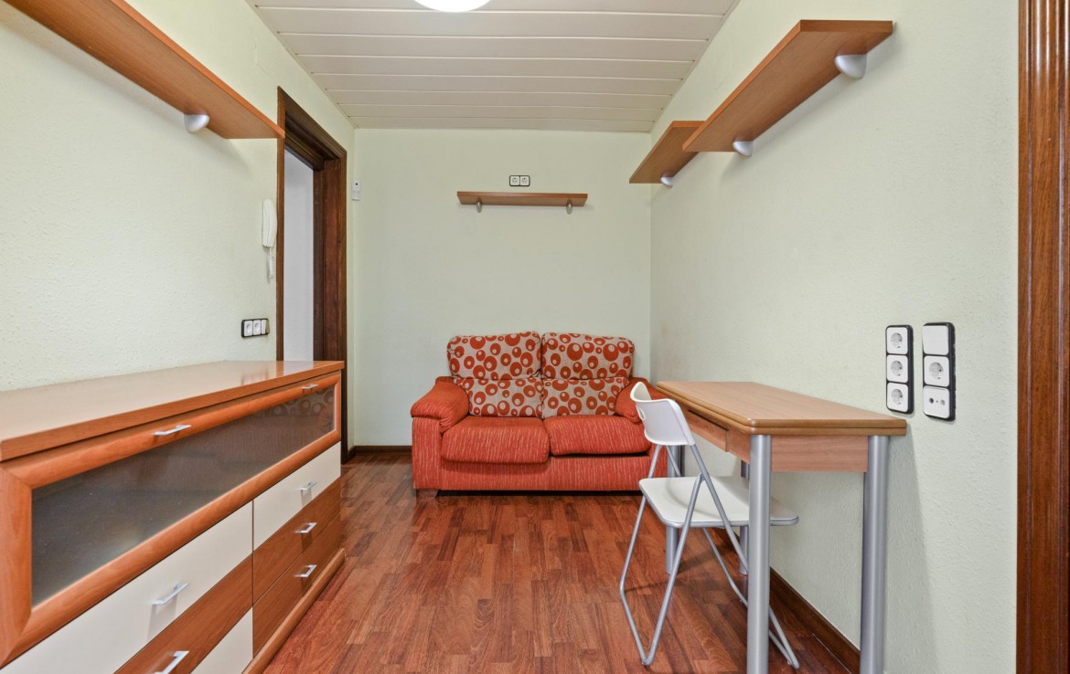 Tiene una superficie construida de unos 37m2 y está distribuido en un salón comedor con salida a un agradable, luminoso y tranquilo balcón que da a la calle Safareigs.